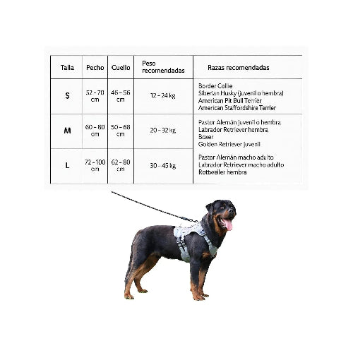 Arnés táctico premium para perros: máxima resistencia, comodidad y control. Incluye hebilla con mango de goma y opciones de personalización.
